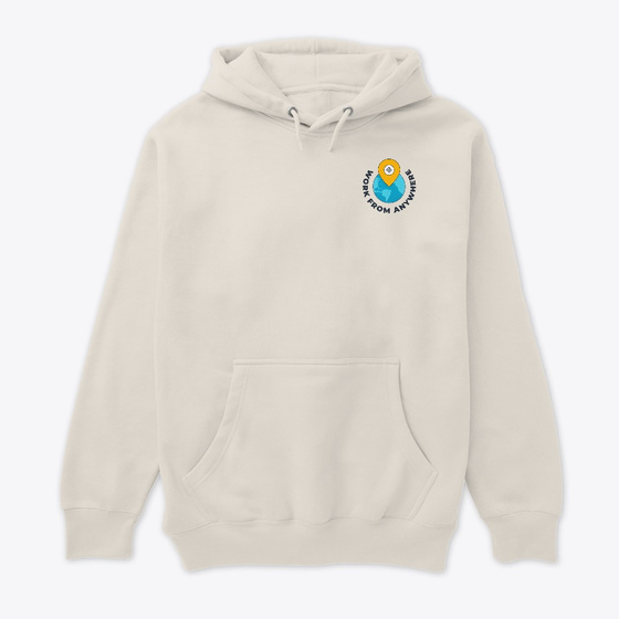 A premium hoodie with a “Work from anywhere” – light design.